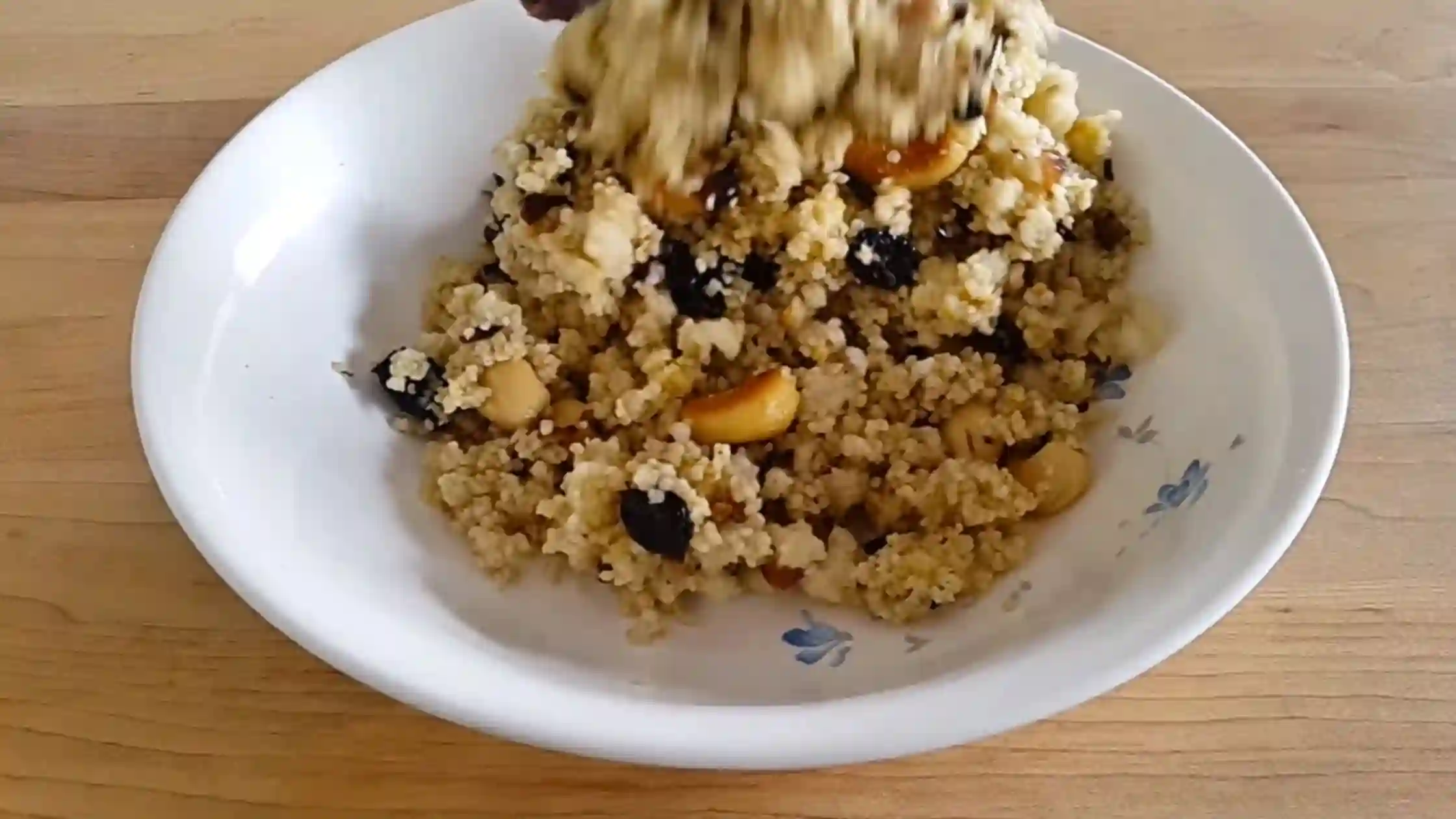 - Cook millet on the flame and mix in dried fruits, honey or maple syrup and saffron strands (in case with saffron).