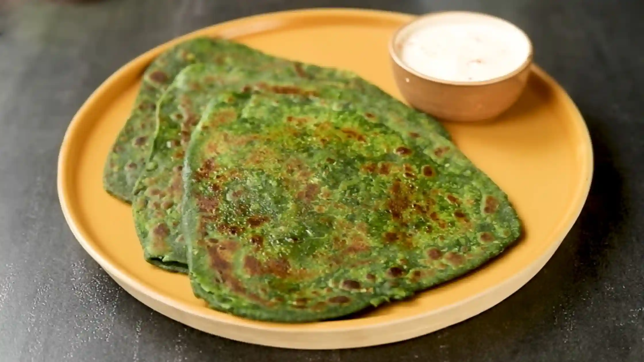 1For the preparation of spinach paste one cup spinach leaves can be blanched and paste can be prepared. When used, mix with 2 cups of wheat flour blended it with salt after which make it into dough. You can make thin flatbreads via taking small portions of dough and knocking down it into a small round disk and fry on a tawa with a touch oil till it turns golden in shade.