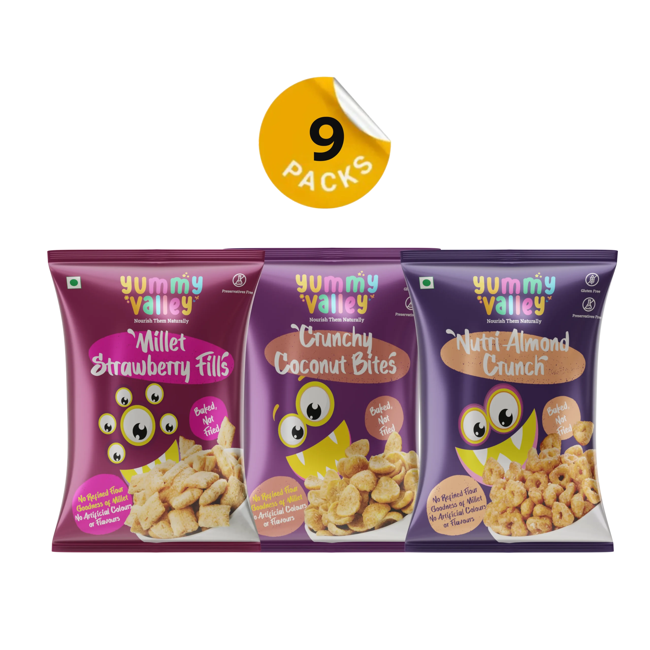 Enjoy the delicious flavours of coconut, strawberry & almond along with the nutritional benefits of millet. Get your hands on these healthy, tasty, and nutritious Foxtail & Jowar millet bites. The crunchy crisps are a perfect blend of millets making them ideal for healthy snacking. Apart from calcium and antioxidants, millet contains lots of protein and dietary fibre.